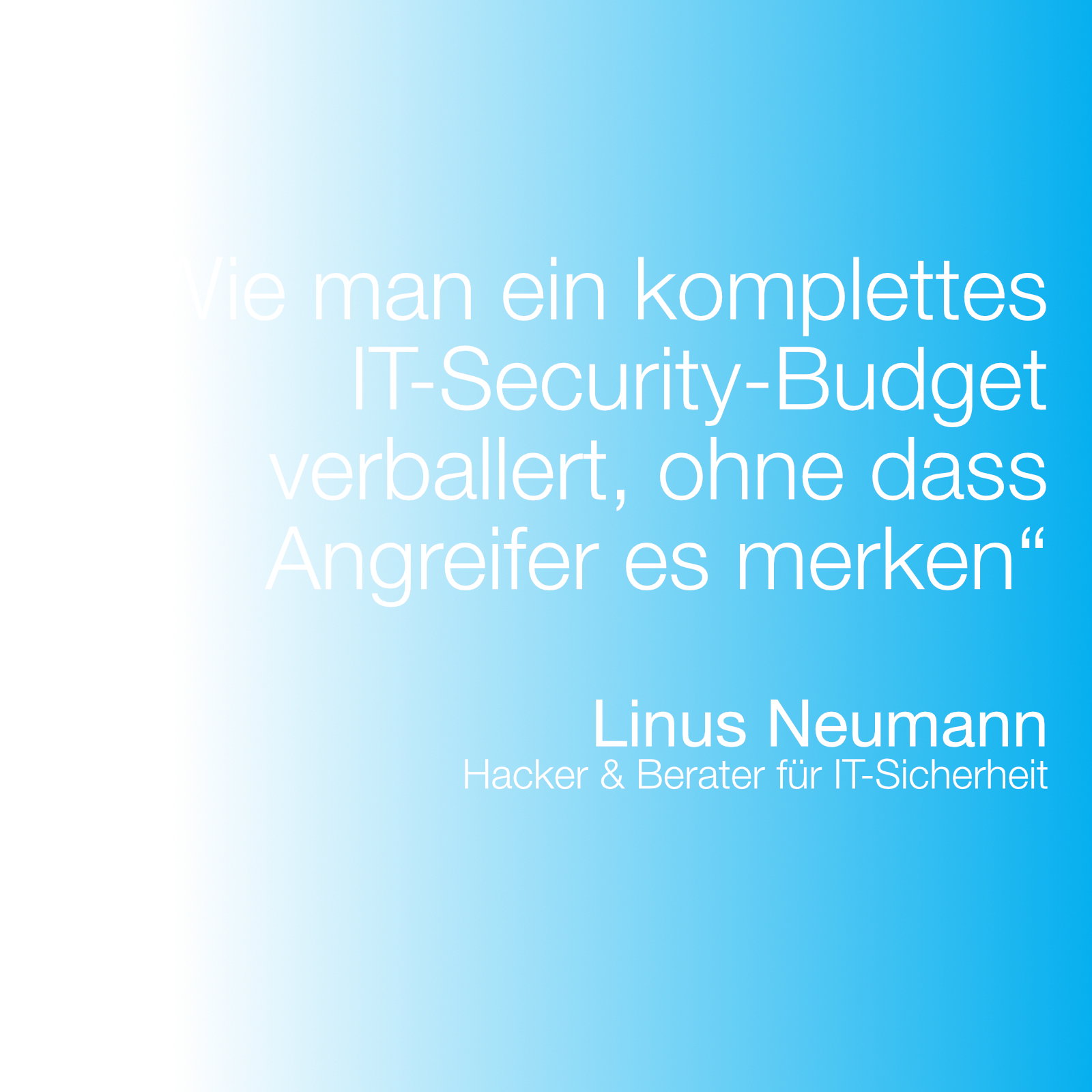 Linus Neumann, Diplom-Psychologe, ist IT-Sicherheitsberater und Hacker. Er berät als Sachverständiger für IT-Sicherheit den Bundestag auf und ist Mitbegründer des Podcasts „Logbuch:Netzpolitik“, der aktuelle netzpolitische Themen beleuchtet.